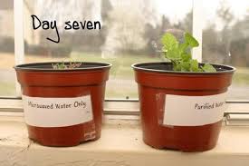 She took filtered water and divided it into two parts. The first part she heated to boiling in a pan on the stove, and the second part she heated to boiling in a microwave. After cooling she used the water on two identical plants to see if there would be any difference in the growth between the normal boiled water and the water boiled in a microwave.